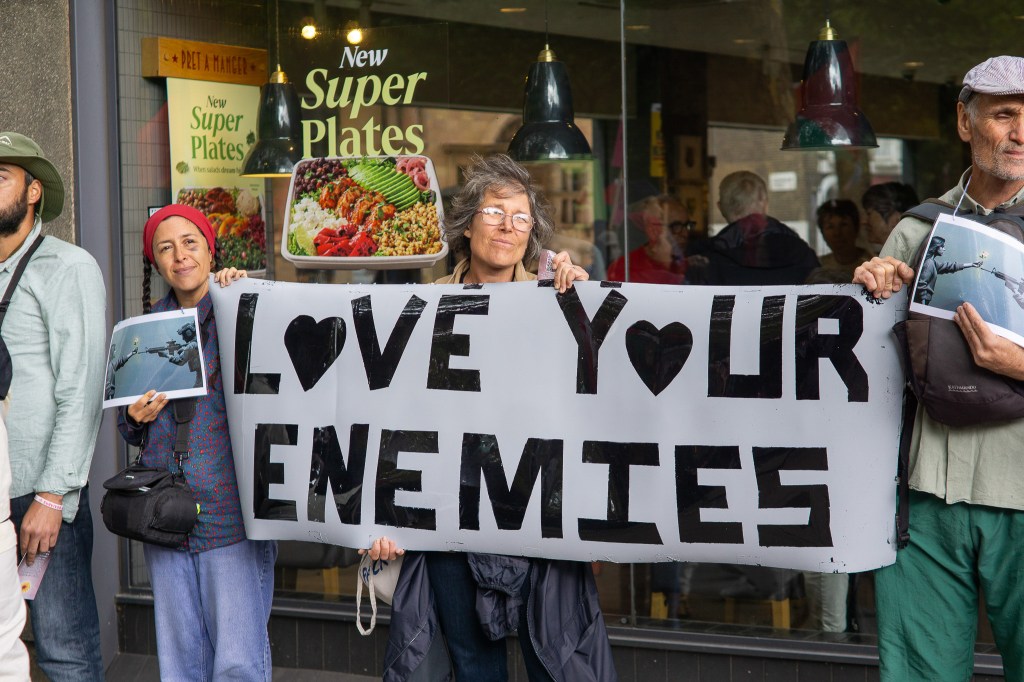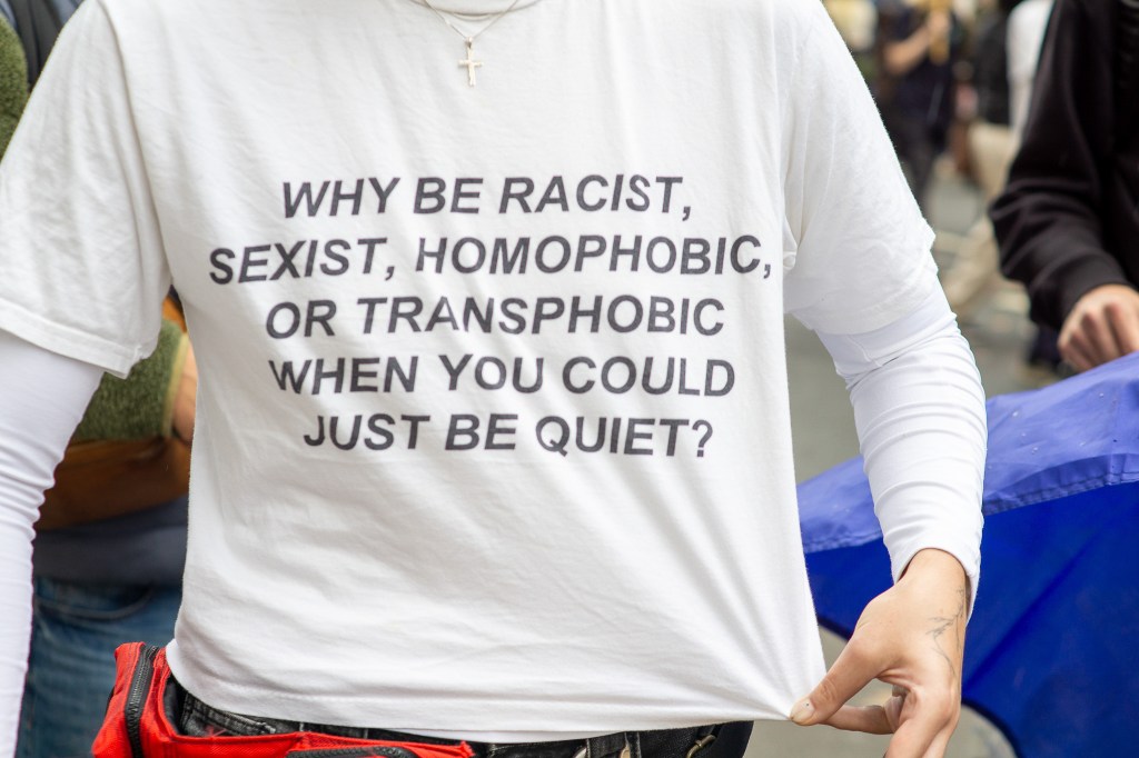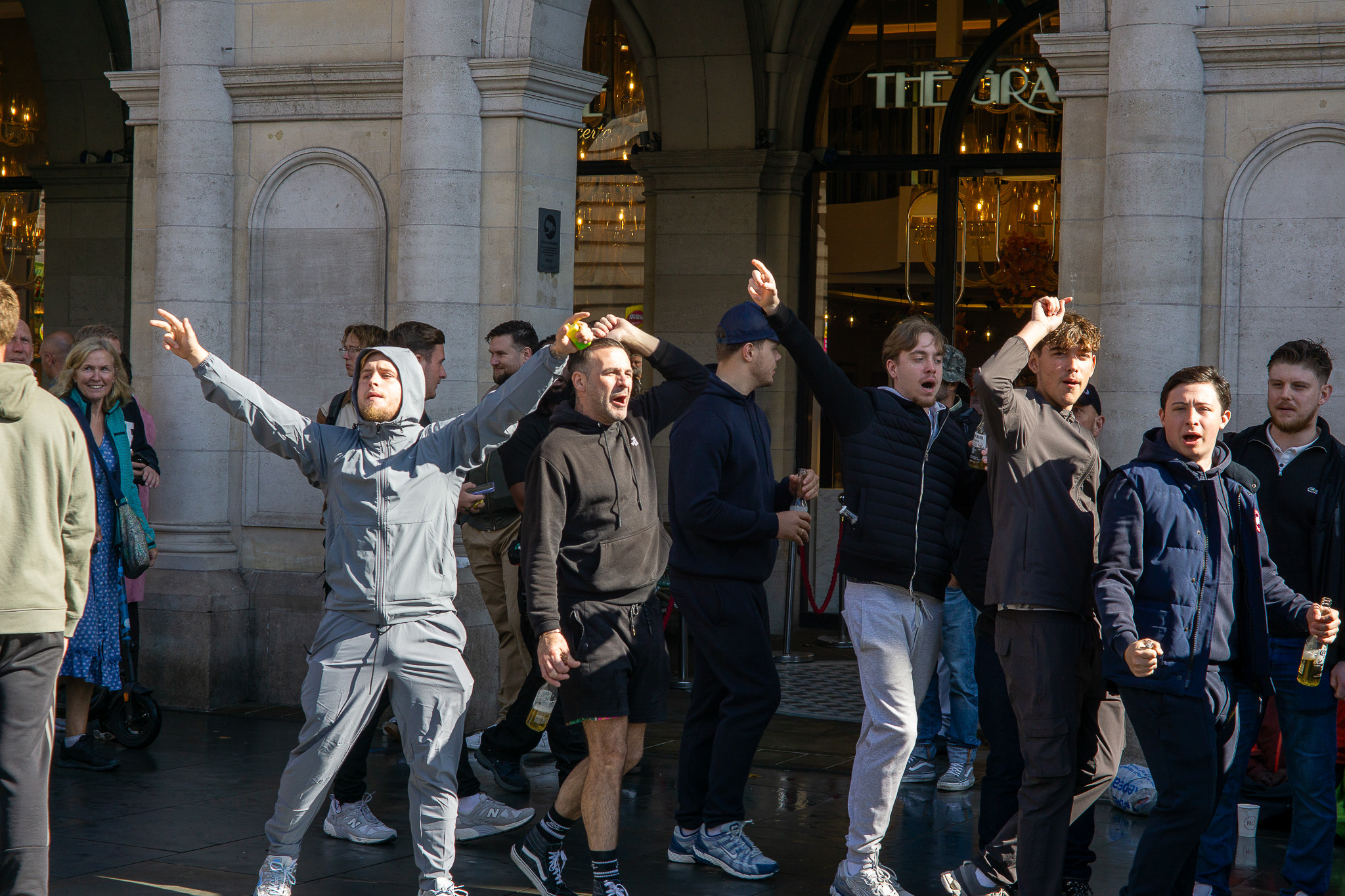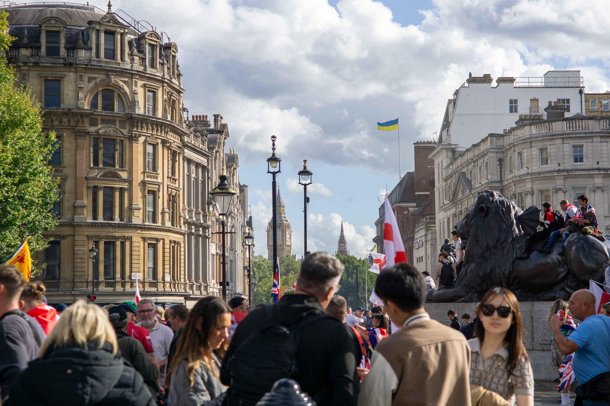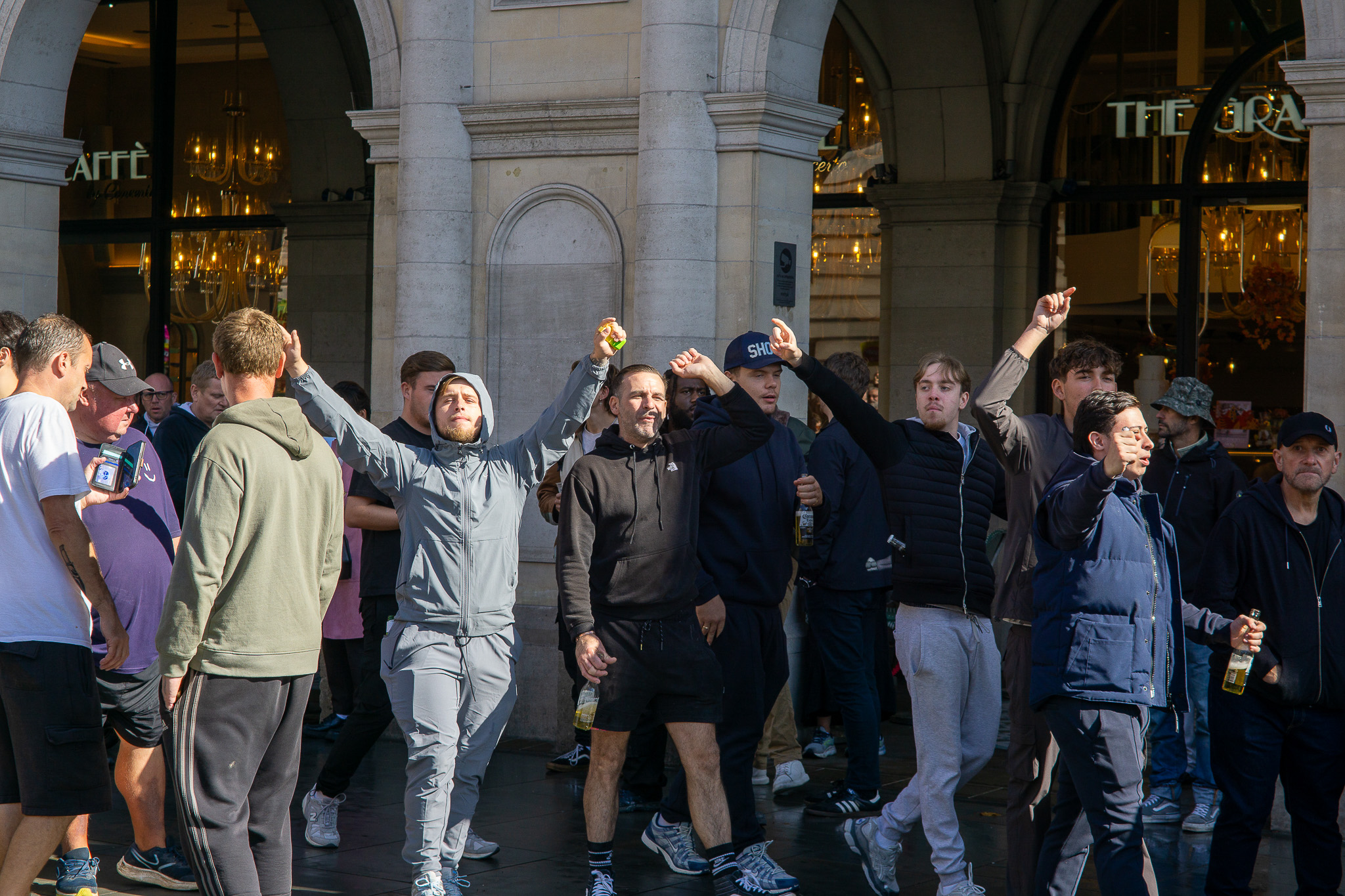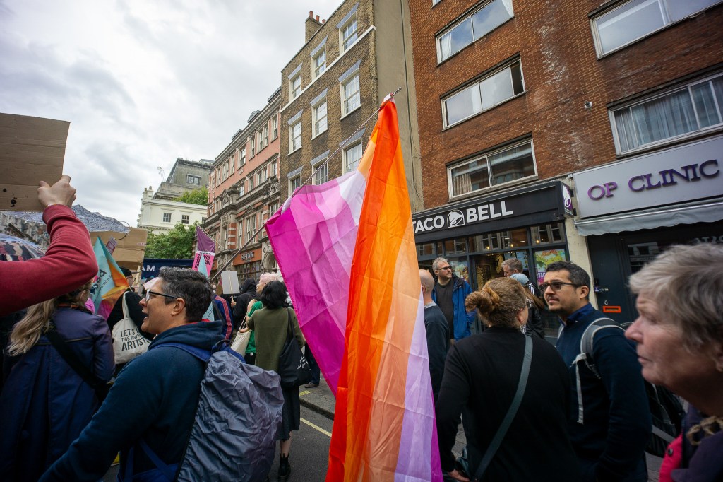 In Trafalgar Square, the Met Police, failed to keep the far right protests away from the counter protest. The far right, which consisted mostly of white men, many of who were drunk, behaved aggressively, shouted abuse, sometimes racist and threatened people on the anti racism demonstration. One man tried to pull my scarf off. They chanted ‘paedo’, ‘traitor’ and ‘leftie scum’. The far right, greatly outnumbered the counter protest, which is deeply worrying. The counter protest was led by the women’s bloc, and of course was diverse in many ways and peaceful. The Brighton Stand Up Racism group travelled up on the train together. The counter protest was meant to finish with speeches in Whitehall, but due to the number of far right and poor police management, many were unable to reach the designated area. The police kettled the SUTR into Whitehall, blocking the entrance, which meant many were stuck in Trafalgar Square, with the far right.