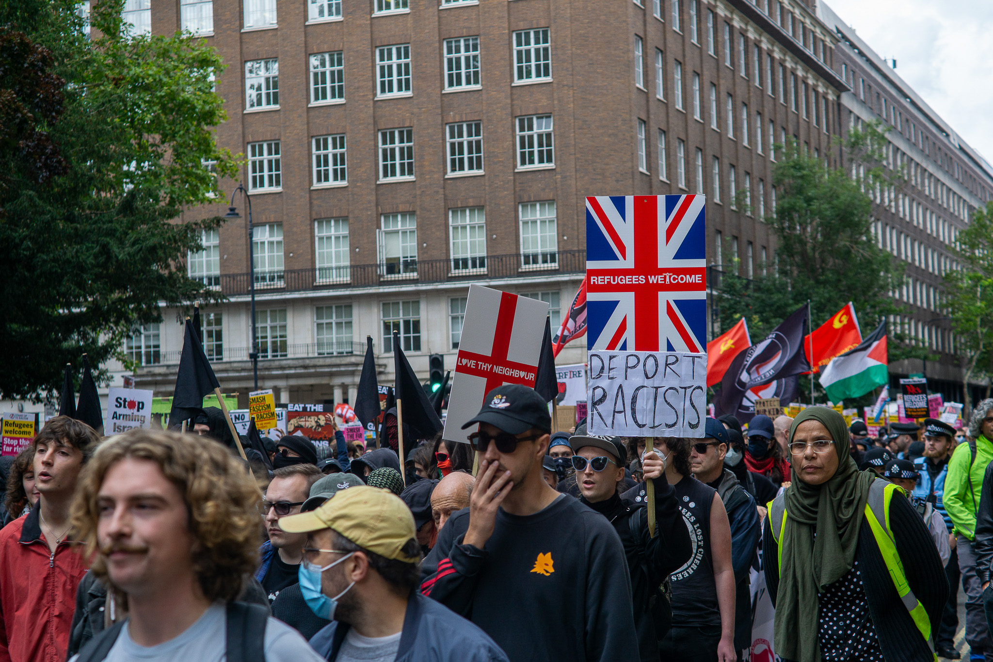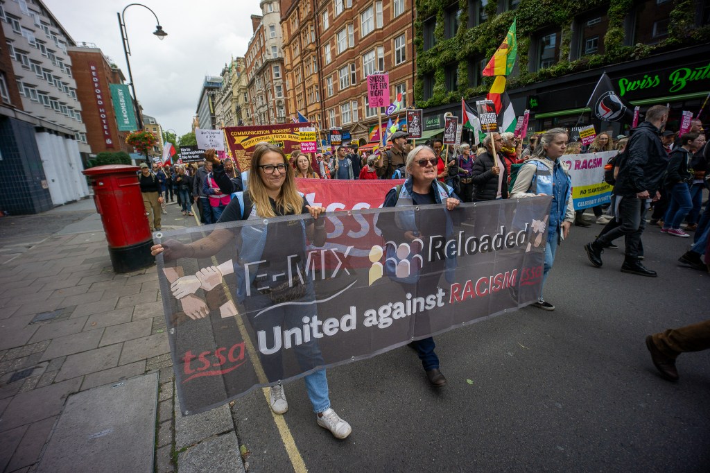 A counter protest , organised by Stand Up To Racism, to the ‘unite the kingdom’ demonstration organised by the far right Steven Yaxley Lennon (aka Tommy Robinson). While many on the protest, may say they are not far right, the organisers and leaders definitely are.