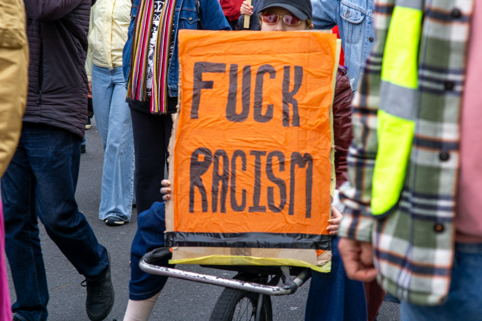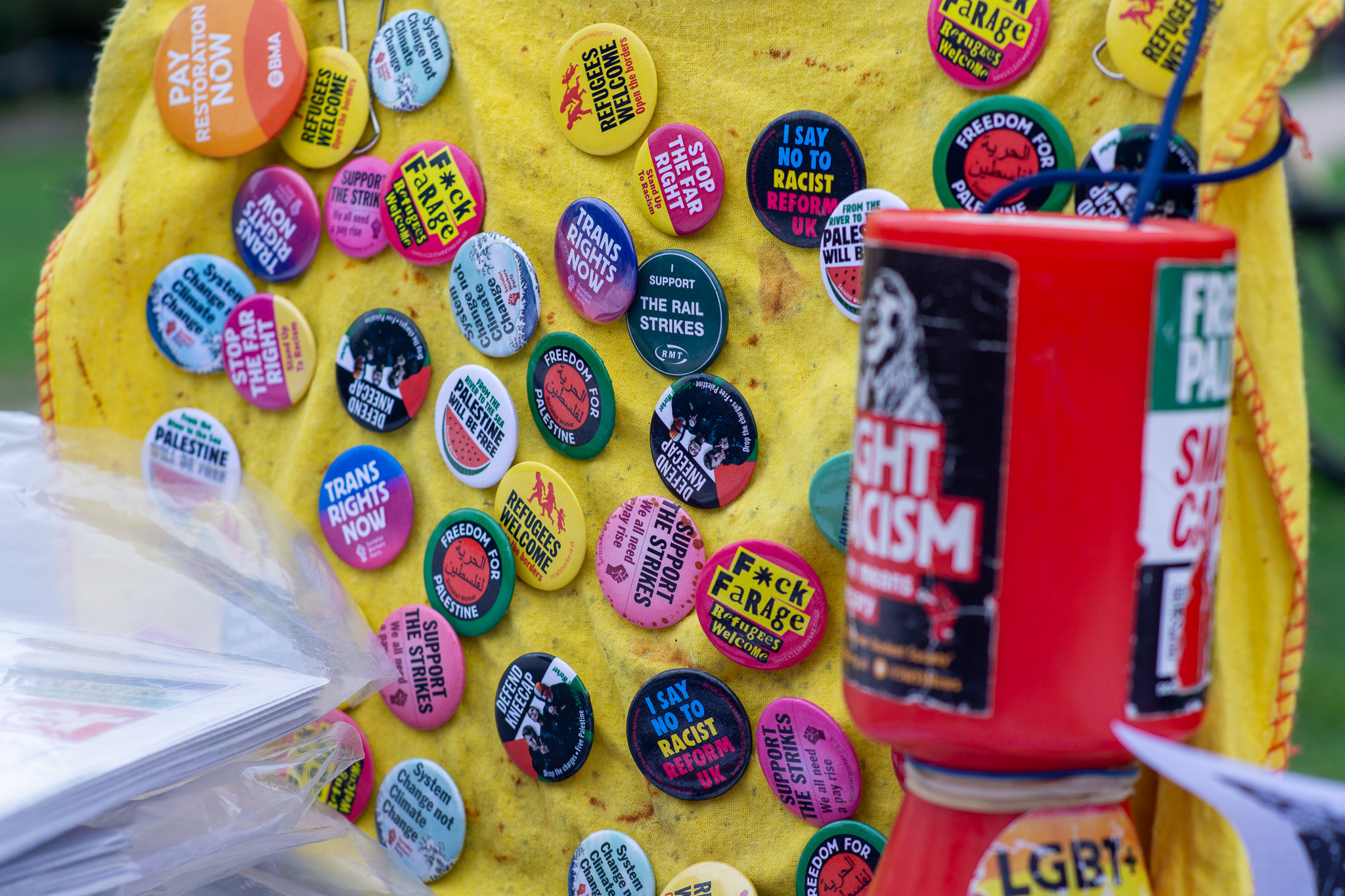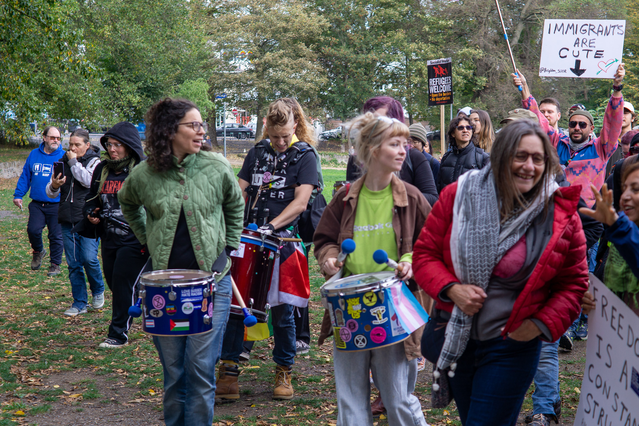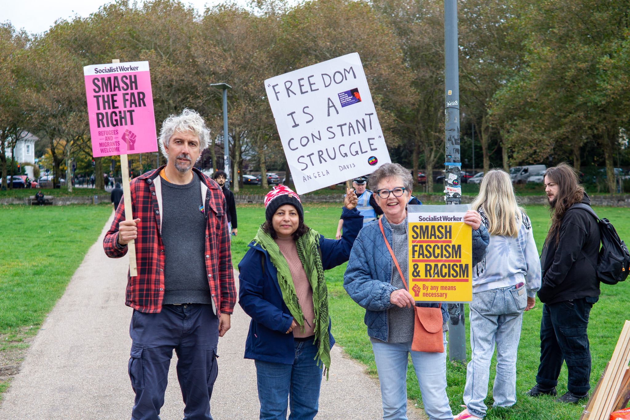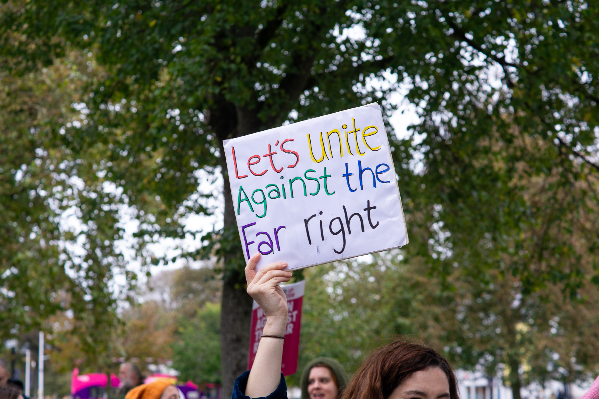 18th October, around 500 to 600 people marched through Brighton, to protest increasing racism in society. As we passed through Brighton, many were supportive. Early on in the demo, on London road, one guy at the side of the road became abusive, the police asked him to calm down, and he started a fight with them, at which point around 5 of them arrested him. After the march, we went to a cafe in Hove. Initially, upon seeing Laila’s placard the woman behind the counter was frosty with us. She asked us if we’d been on a demo. Yes, and anti racism one. Are you supportive of Palestine she asked, yes..I showed her my jumper. She immediately opened up, explaining that a bunch of pro Israel demonstrators had just been in. They’d made racist comments about Muslims, adding that she would be forced to wear a Burka. She refused to serve them and asked them to leave. When she described what they looked like, it was clear she was talking about some of Sussex Friends of Israel, who’s recent antics have included shouting in the street at Jewish people who support Palestine, and generally harassing anyone who stands agains the genocide. We ended up having a nice chat about music, and some tasty snacks.